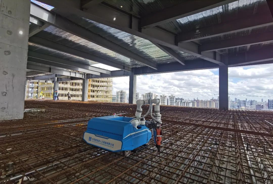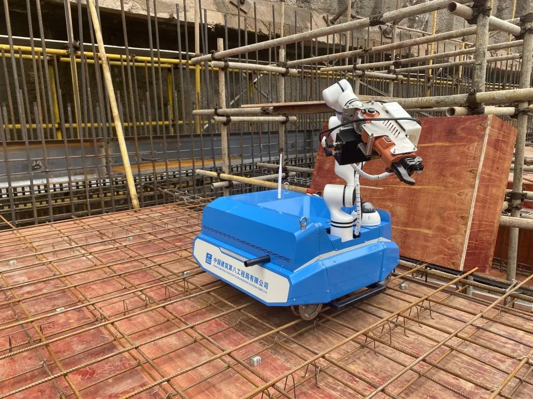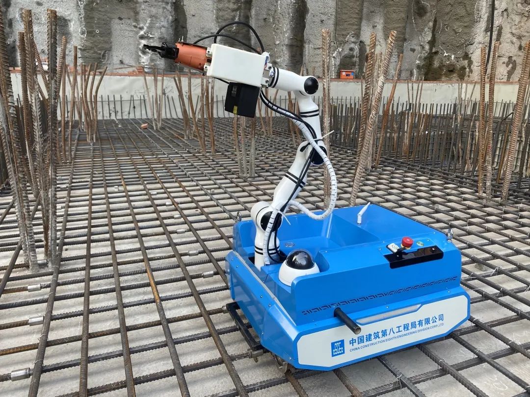 近日,中建八局工程研究院主导研发的自行式智能钢筋绑扎机器人(RBBD-Bot2.0)完成样机试制,成功在中海成都天府新区超高层项目开展多场景测试应用。