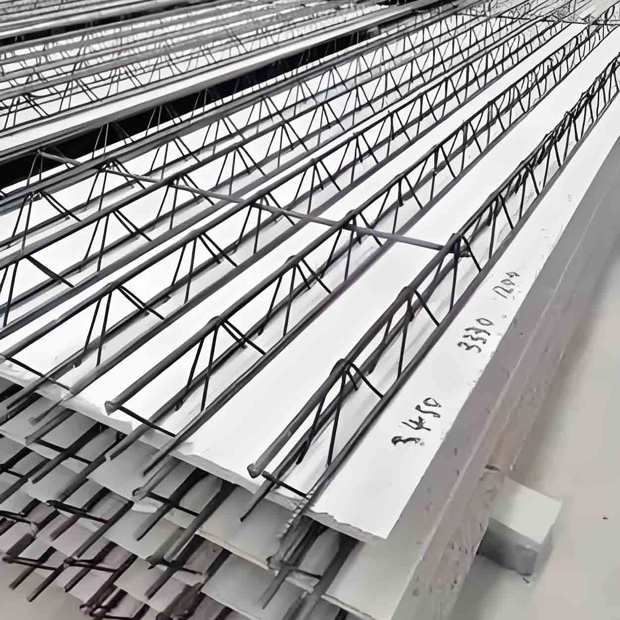 免拆底模钢筋桁架楼承板生产工艺解析:免拆底模钢筋桁架楼承板采用工厂机械化生产模式,通过标准化流程控制,保障产品质量稳定性,其核心生产工艺可细化为以下关键环节:一、详细生产工艺流程